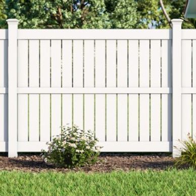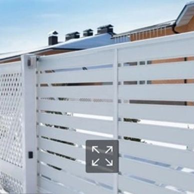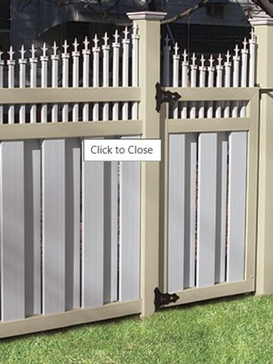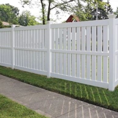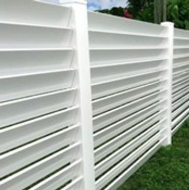 This louvered style of fence provides the most privacy you can get with the ability to let air flow through the fence. Ideal for windy areas where people want a higher degree of privacy for their yard. Play with the colors to create a distinctive look to your backyard